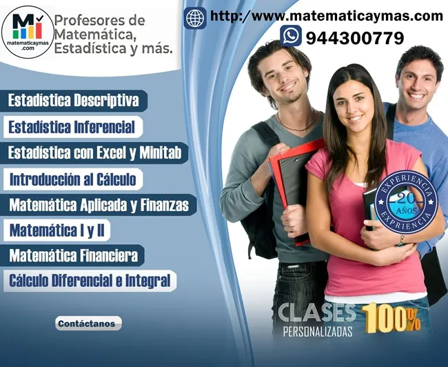 En PROFESORES DE MATEMÁTICA, ESTADÍSTICA Y MÁS nos encargamos de BRINDAR CLASES PERSONALIZADAS AL MÁS ALTO NIVEL a Estudiantes, Bachilleres, Profesionales, Emprendedores y Estudiantes en pre grado, post grado y maestría.